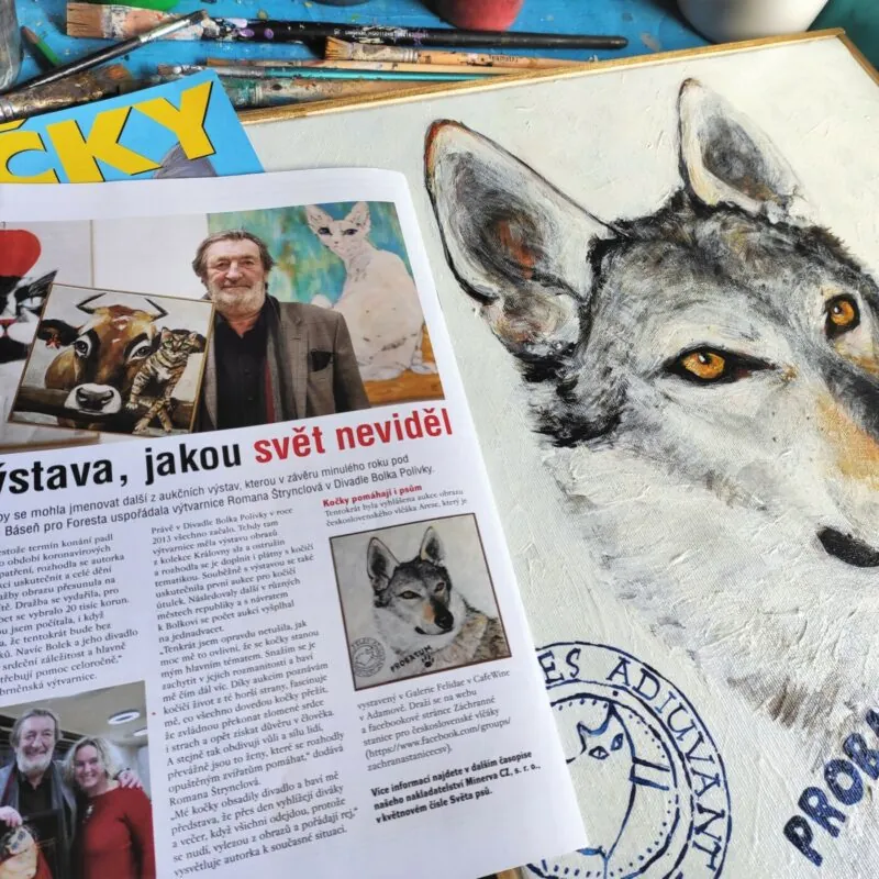 Kočky pomáhají psům Brněnská výtvarnice Romana Štrynclová v roce 2013 vymyslela a důsledně buduje charitativní projekt autorských výstav s aukcemi obr…