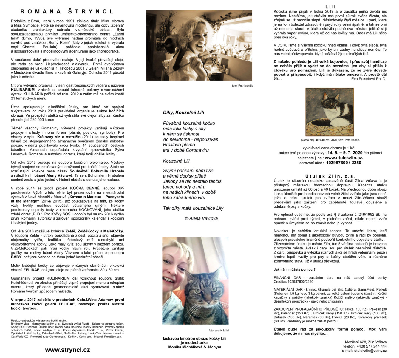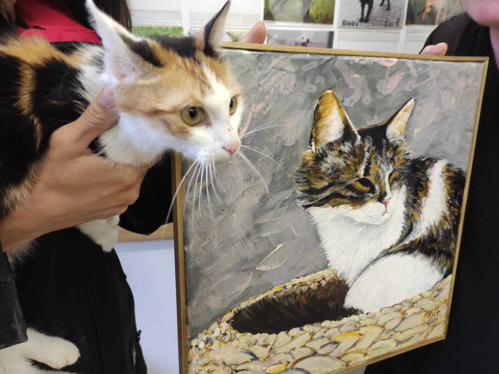 obraz kočky Lili po dobu aukce naleznete v Kavárně Továrna, Vavrečkova 7074, Zlín