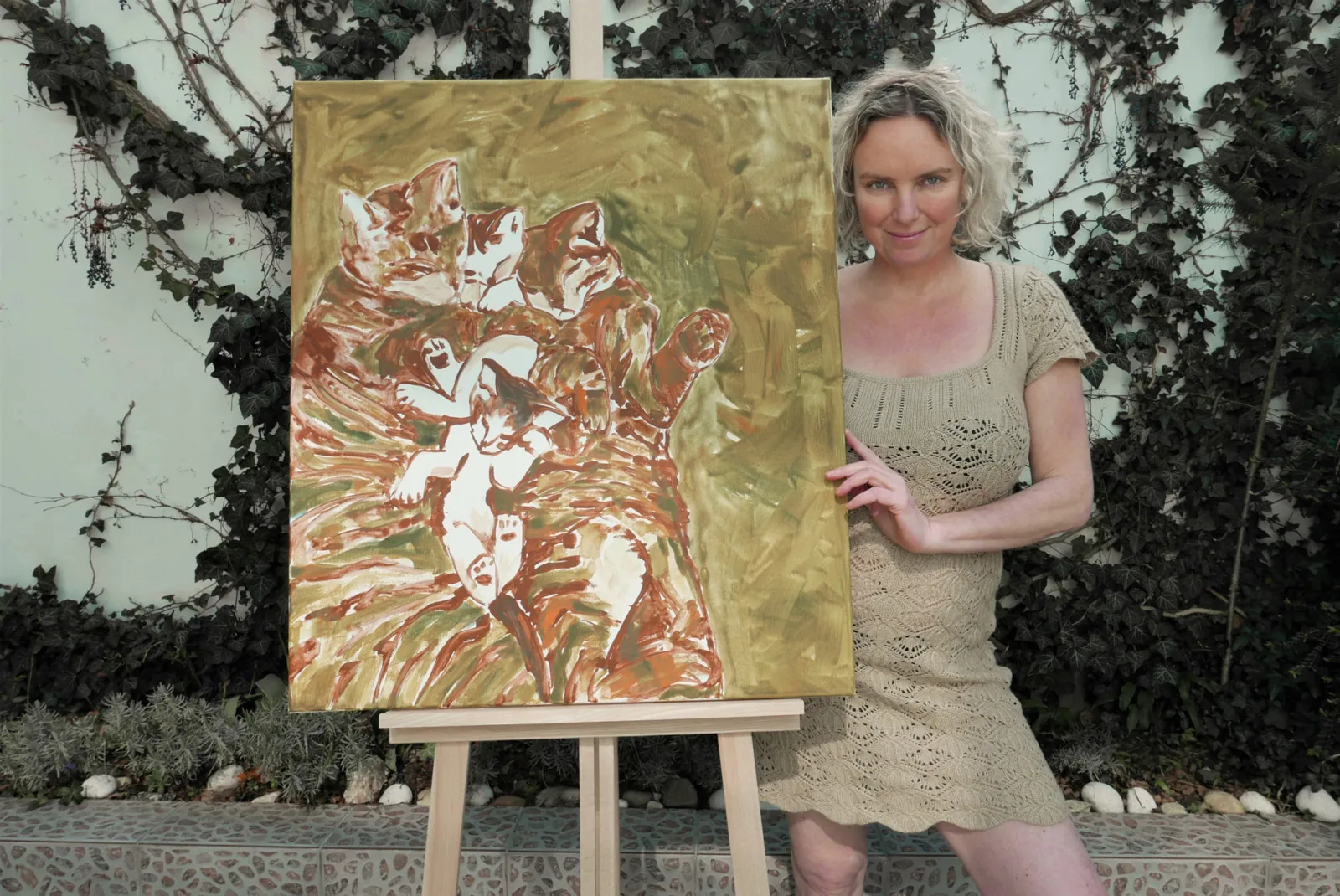 „Modrá louka, Svobodná matka a Rodinka ztvárňují mé oblíbené téma kočičího klubka. Další čekají rozmalované v ateliéru a s ohledem na prostor budou všechny na větších formátech,“ naznačuje Romana. Vernisáž v Galerii Platinium se chystá na 13. června v 18 hodin. „Velkou radost mi udělal Pavol Seriš, který přijal pozvání a bude hostem i spoluzahajovatelem výstavy. Měla jsem možnost ho vidět několikrát hrát, a když měla premiéru jeho autorská hra Pozemšťan, naprosto mě okouzlil. Jak jsem zjistila, i on má kočky rád, a jak řekl – i doma mu dve pobehujú,“ doplnila Romana.