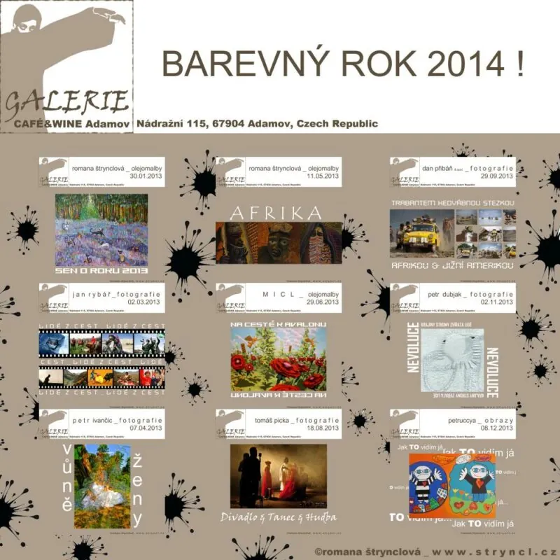 Pod názvem Barvy básní básní barvy prezentuje Romana Štrynclová pravidelně propojení obrazů a básnických textů. Obrazy koček z cyklu Souhvězdí Bohumila Hrabala doplňuje básněmi Alenky Vránové, kolekce olejomaleb Královny slz a ostružin vzniká ke stejnojmennému almanachu ženské poezie (např. obraz Sargassum je inspirovaný básní Svatavy Antošové). Hlavní prostor však v Galerii Platinium tentokrát dostanou ZeMěKočky – obrazy koček s příběhem.