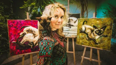 K útulku Pomocné ruce Olomouc z. s. směřuje svou další aukční výstavu výtvarnice Romana Štrynclová. Vernisáž společně se zahájením dražby obrazu kočky Dorinky se uskuteční 11. září v 18 hodin v olomoucké Galerii Anděl. Jako kmotra tentokrát Romana oslovila známého moderátora Aleše Zbořila.