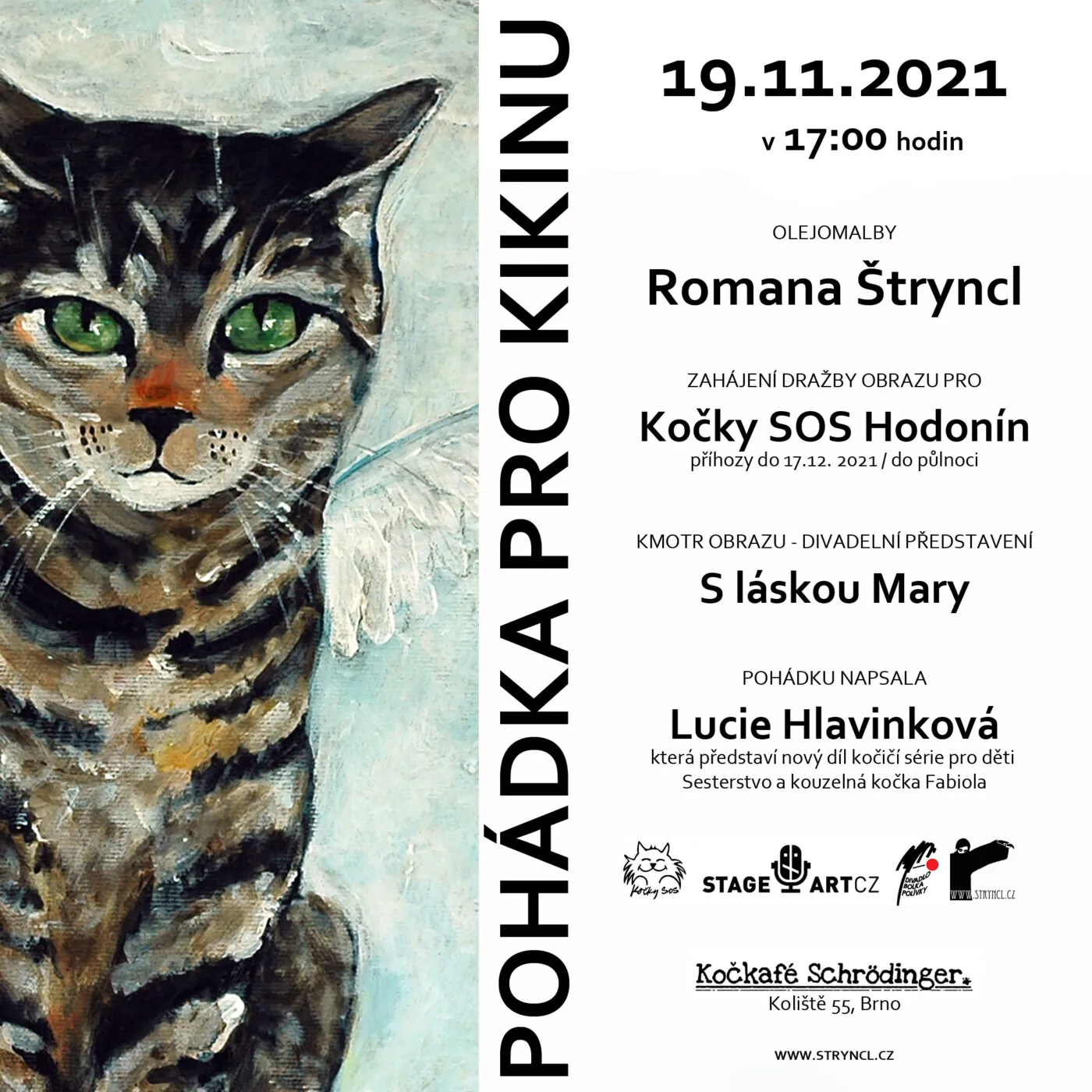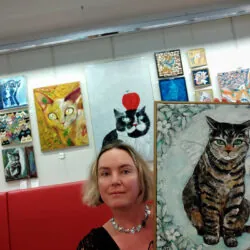 Postupně oslovuji prověřené útulky po celé čr, namaluji jimi vybranou kočku, její obraz se draží po dobu trvání výstavy na stránkách útulku a celá částka jde přímo na jeho účet. První výstava spojená s aukcí obrazu pro kočičí útulek proběhla v Divadle Bolka Polívky v roce 2013.